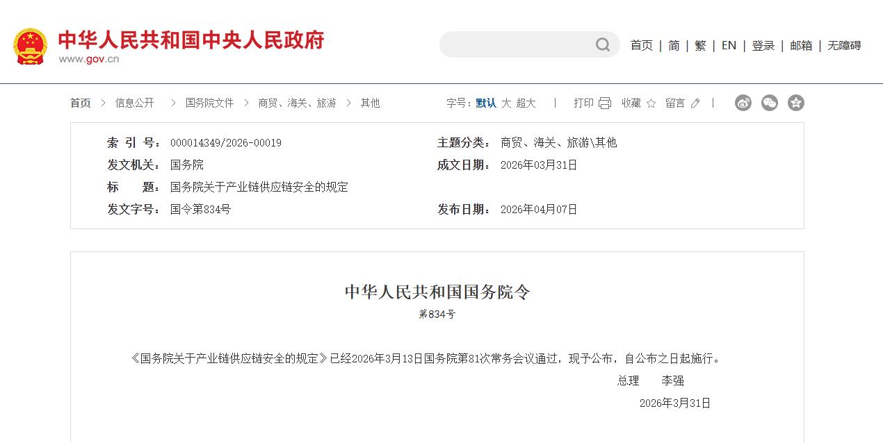 国务院关于产业链供应链安全的规定